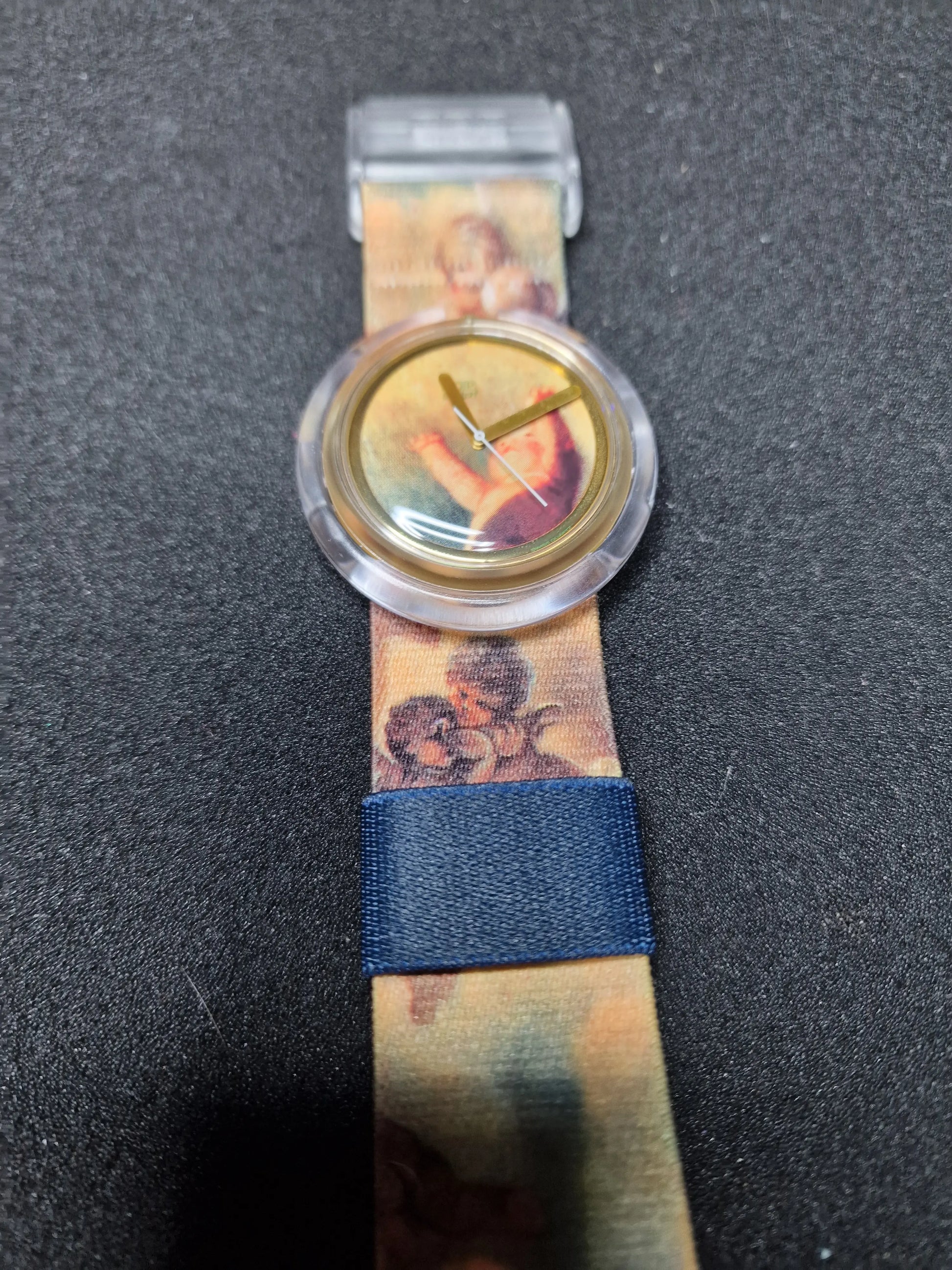 The Swatch Pop PWK168 βPuttiβ, designed in 1991 in collaboration with Vivienne Westwood, is more than a watch β itβs a work of art. The dial and strap feature baroque cherubs (Putti), blending classical painting with bold 90s pop style. π«