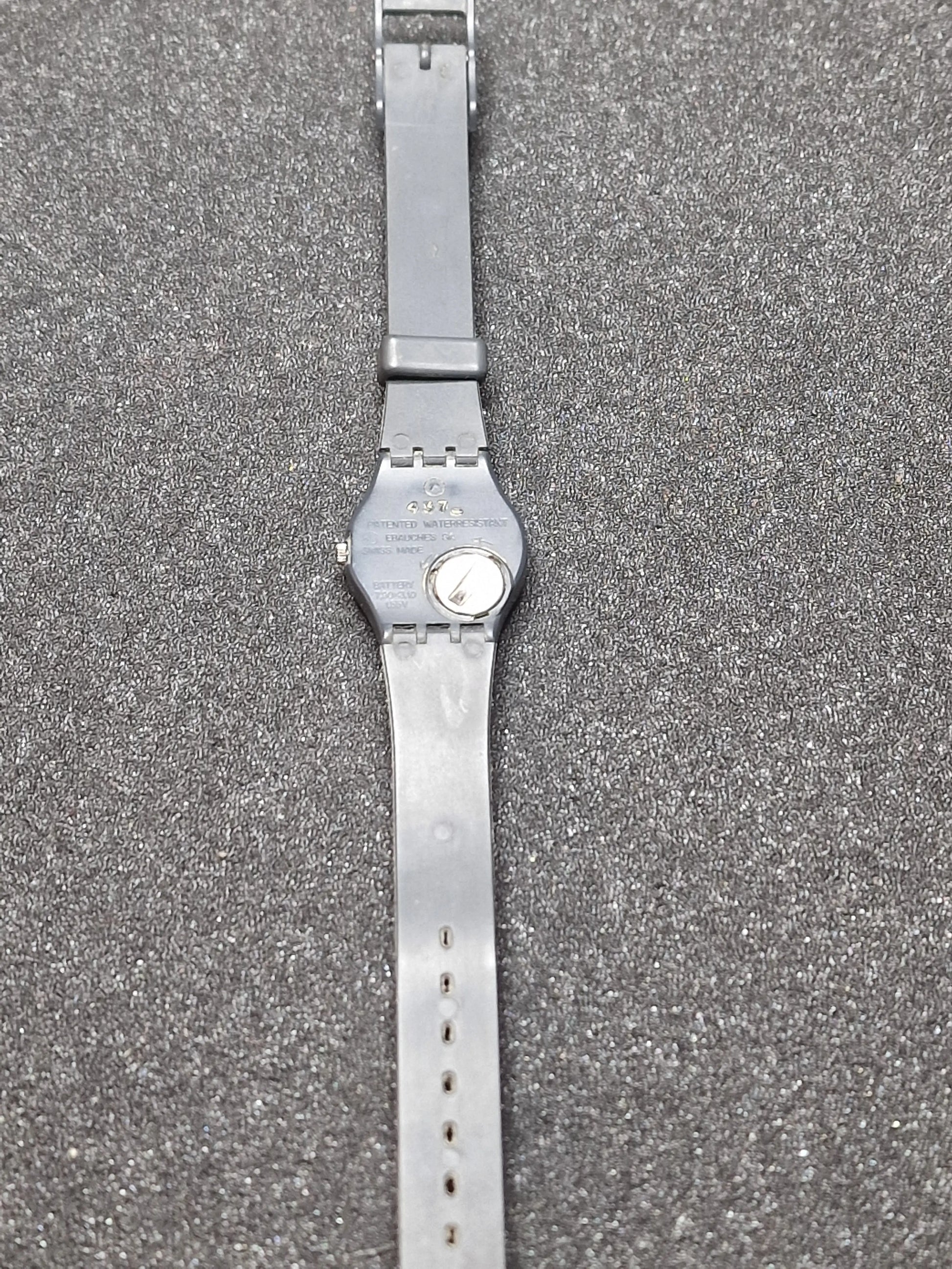 A highly collectible early Swatch model — minimal, artistic, and symbolic of the brand’s revolutionary 1980s design era.