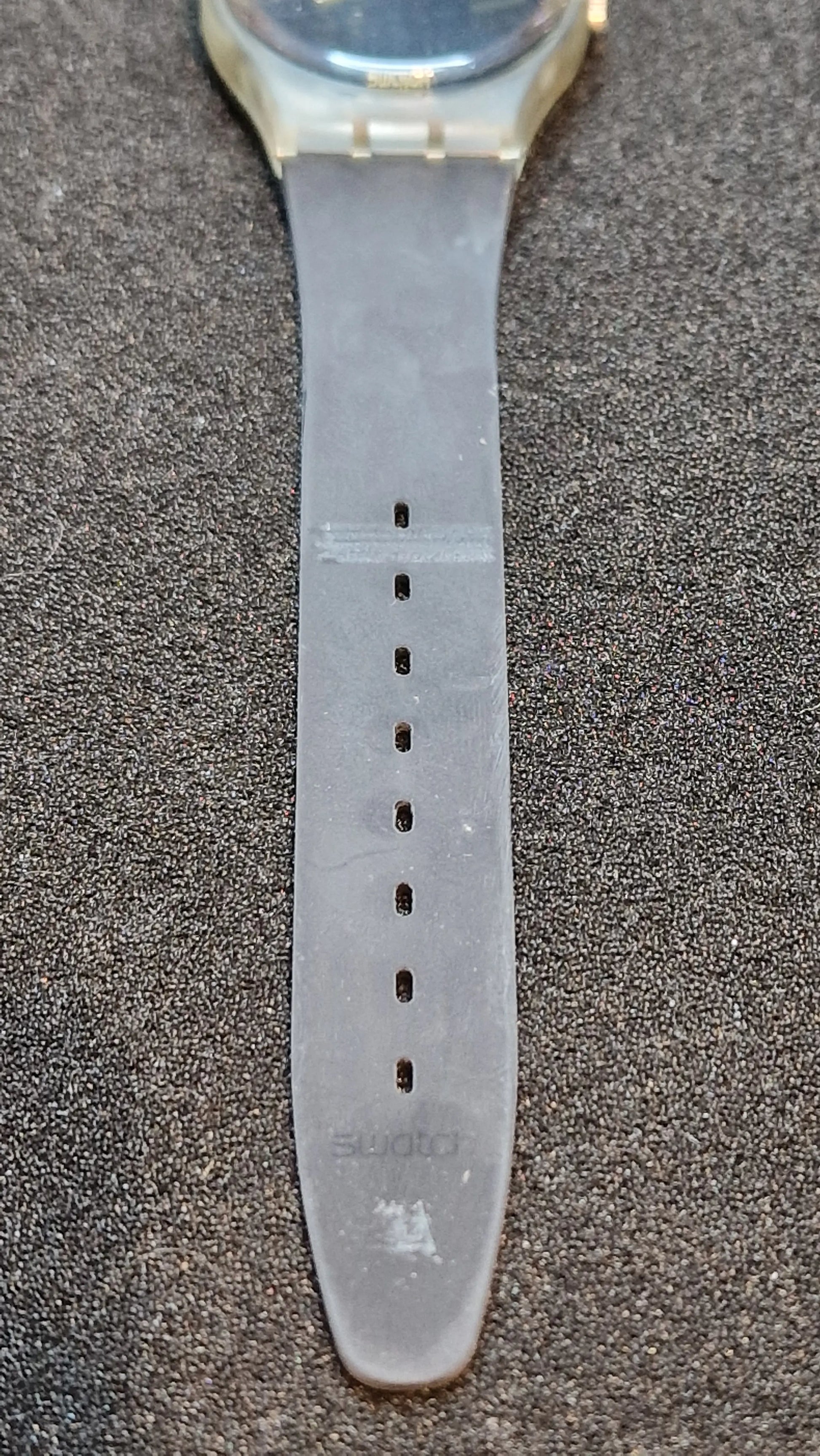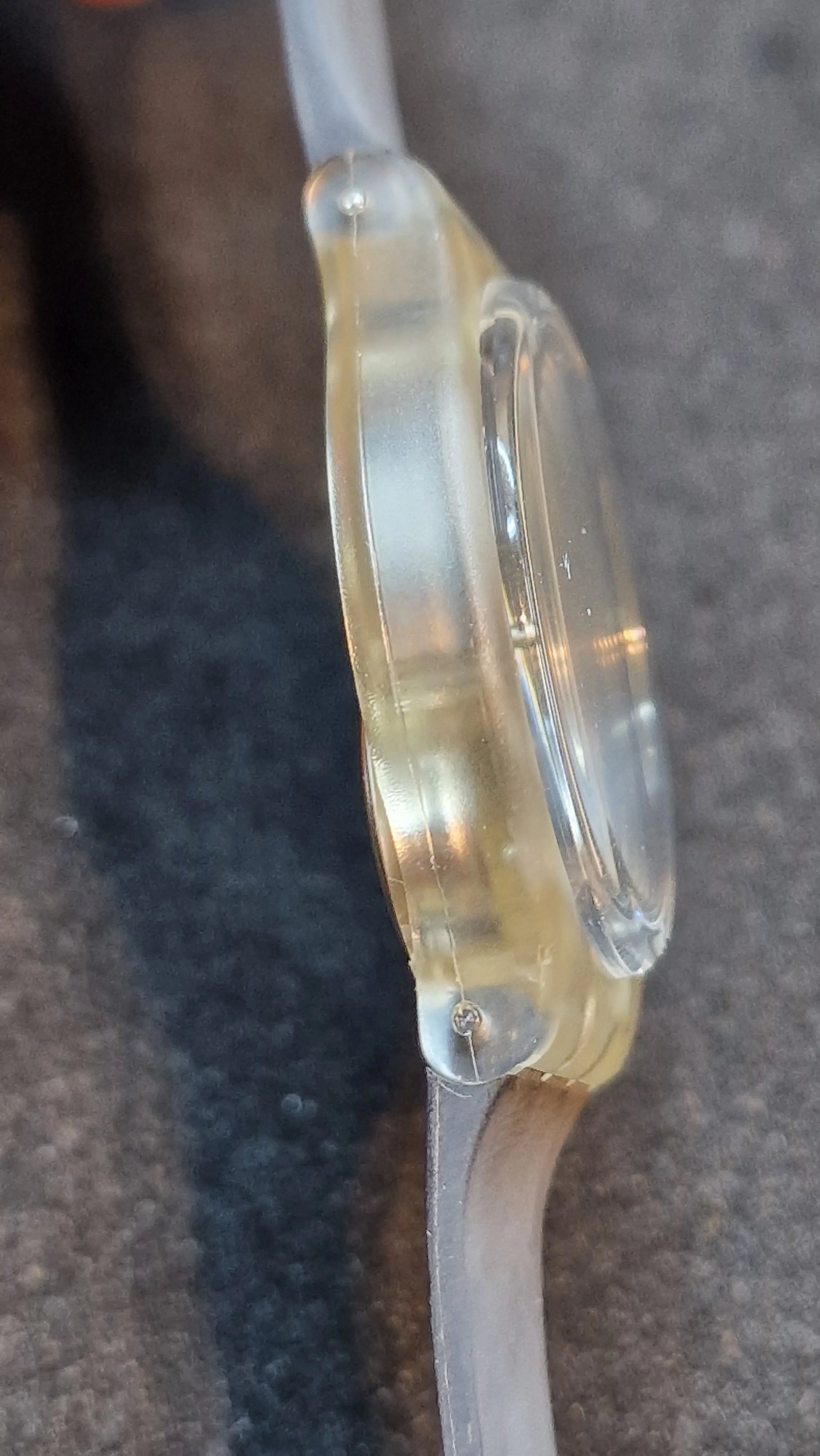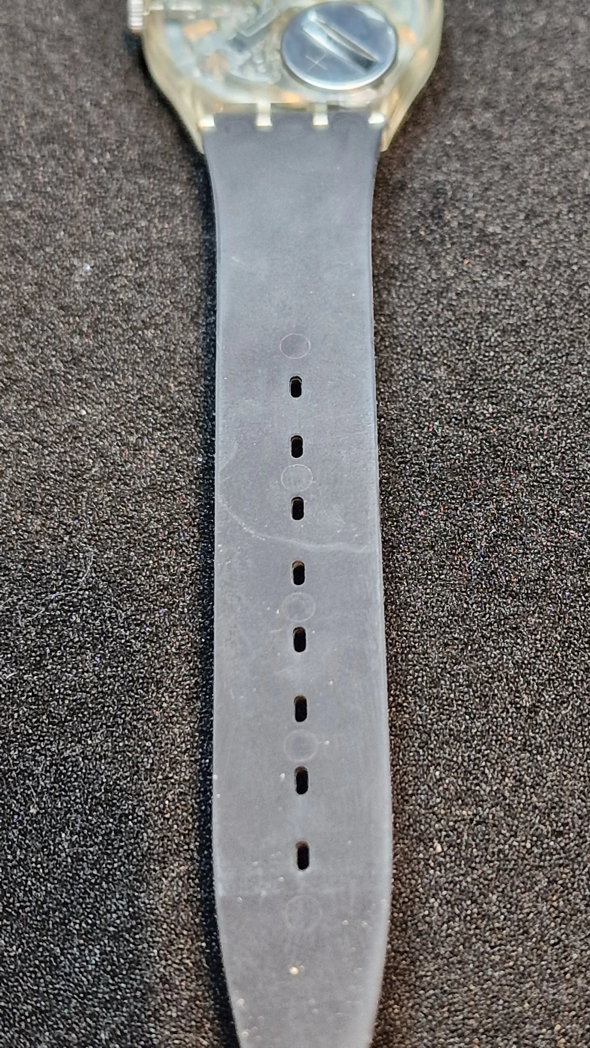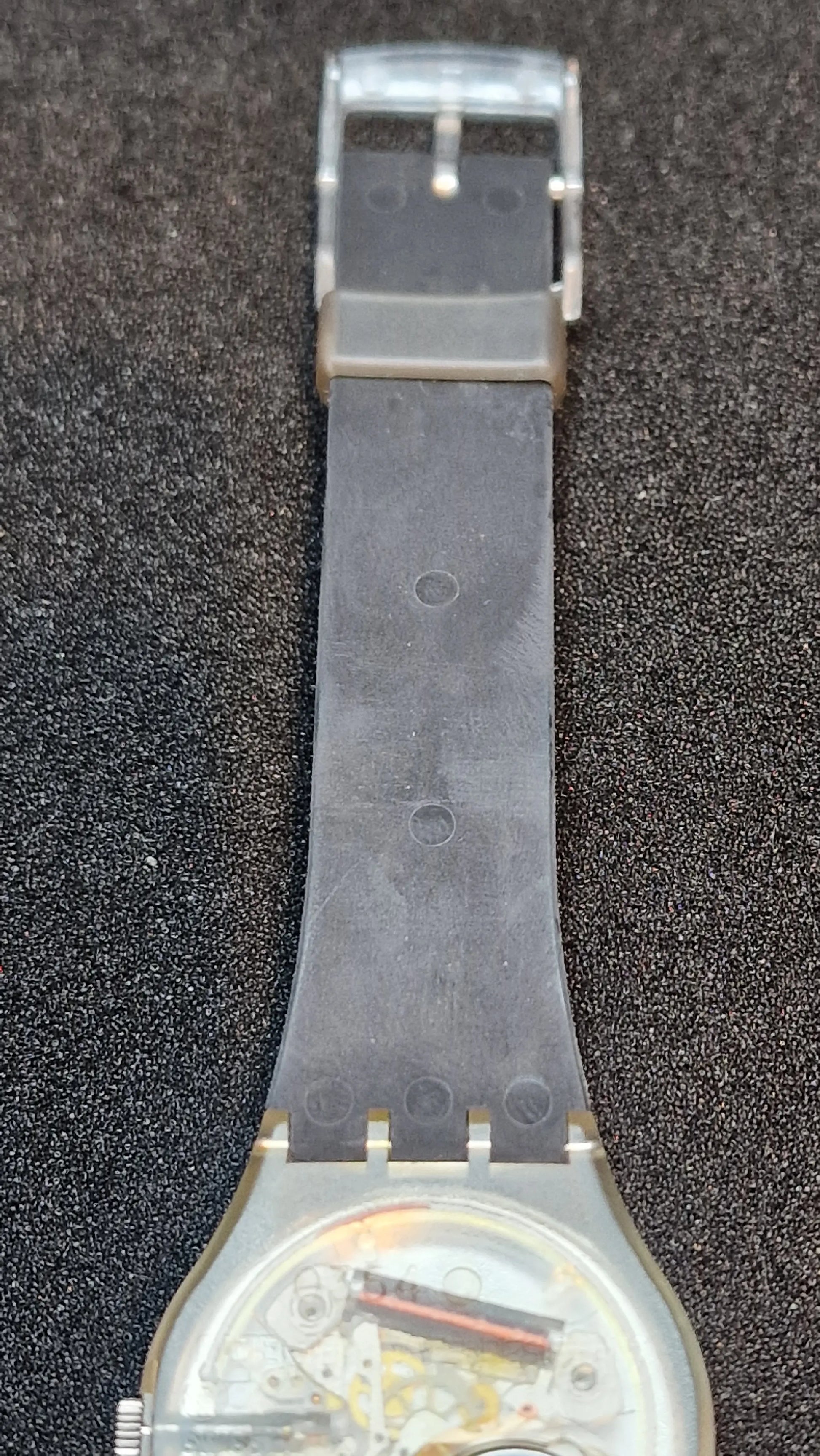 Elevate your Swatch collection with this beautiful Swatch GK104 “Snowwhite”, released in 1987 – one of the early transparent Swatch models that defined the look of an era.