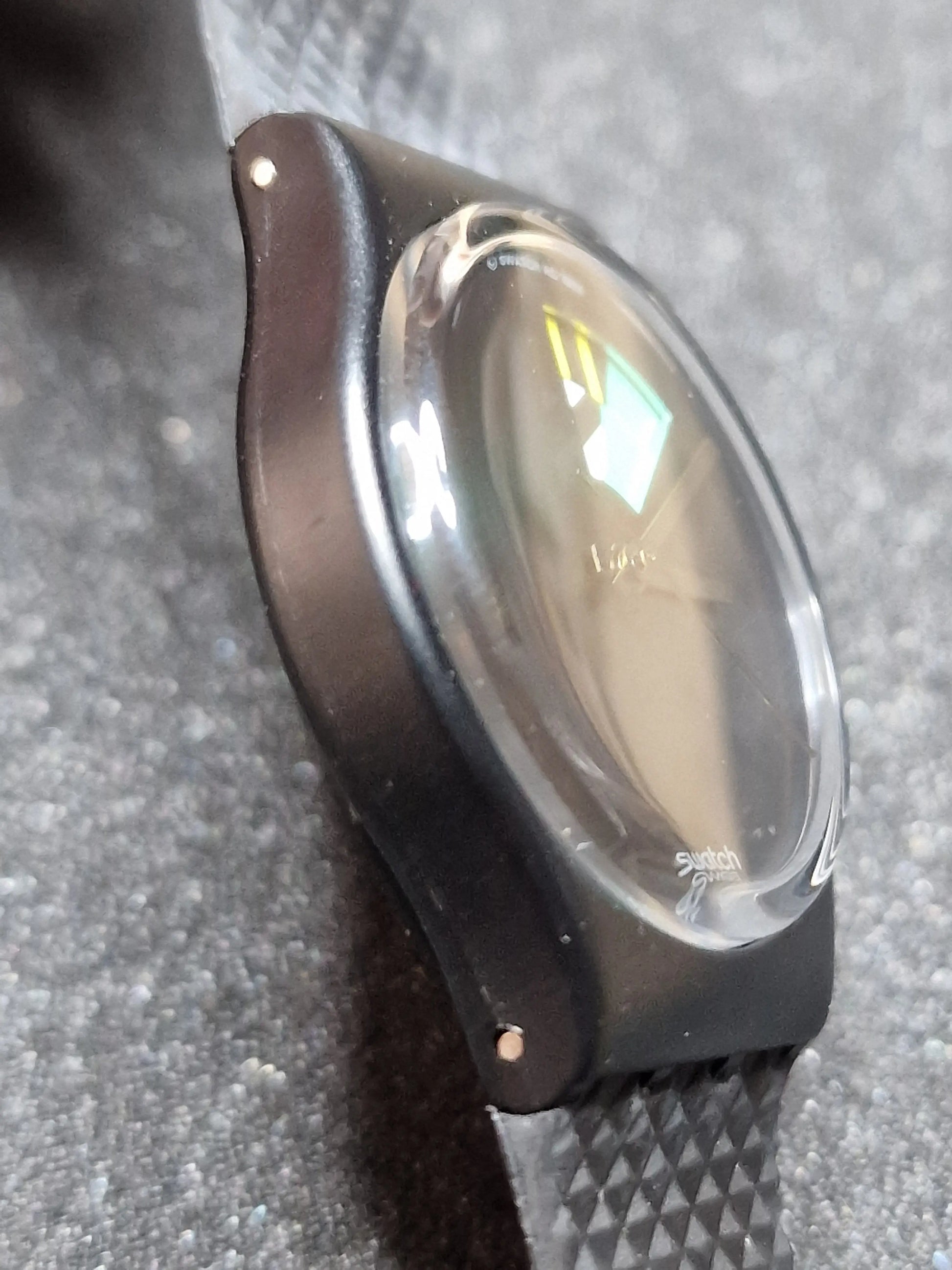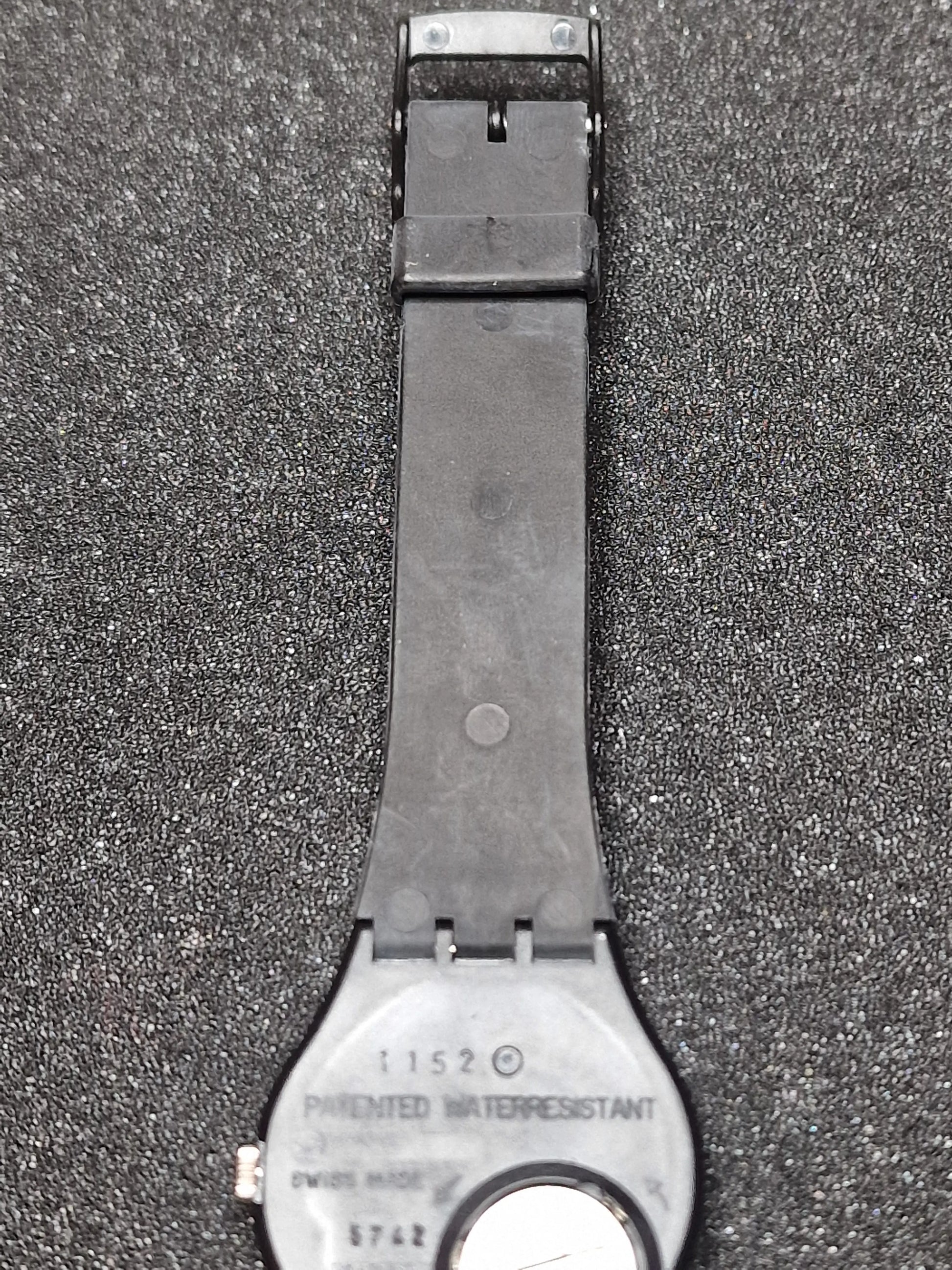 A timeless and sophisticated Swatch from the geometric era — understated yet artistic. Perfect for collectors who appreciate clean design and bold color contrast.