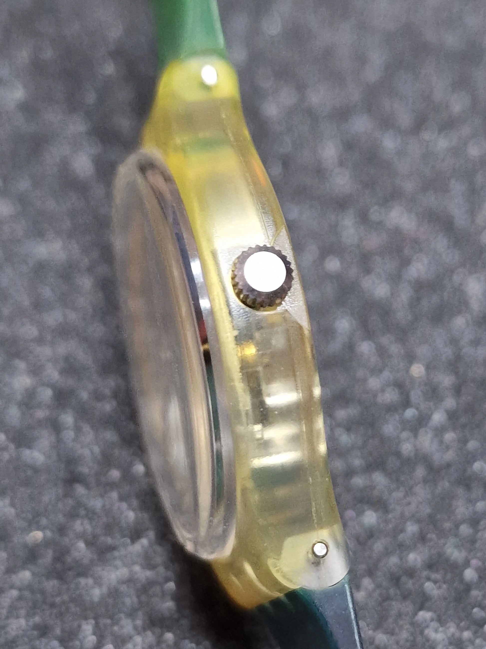 Case: Transparent yellow plastic, 34 mm