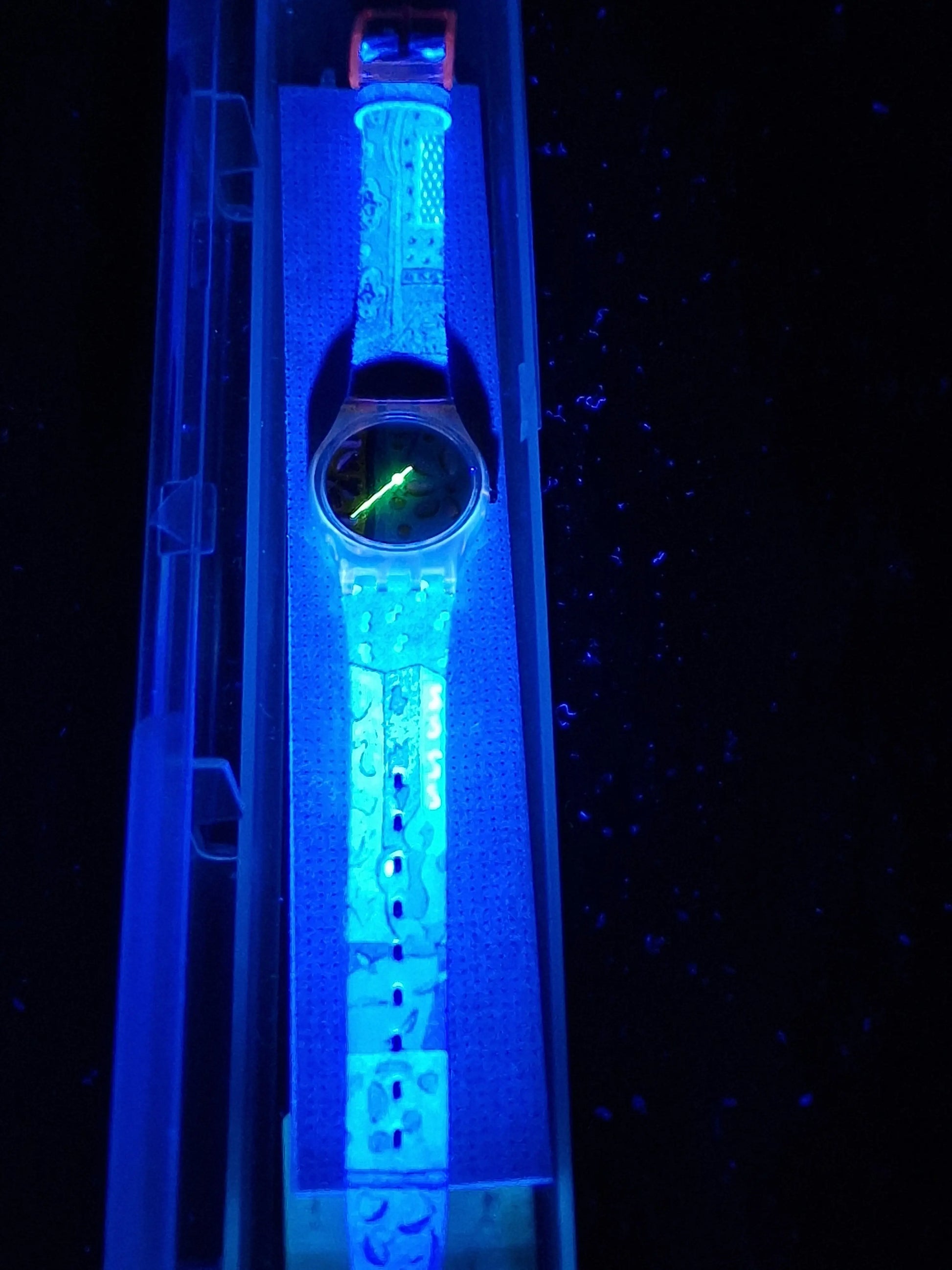 💡 A highly sought-after early 90s Lady model with glow-in-the-dark UV effect – perfect for collectors of rare Swatch pieces.